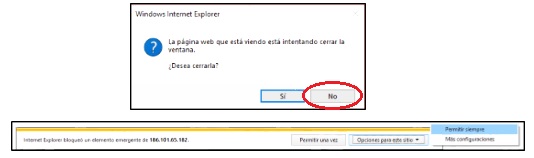 Si no aparece el menu de ingreso por favor active el permitir ventanas emergentes desde este sitio web en su navegador y vuelva a ingresar.